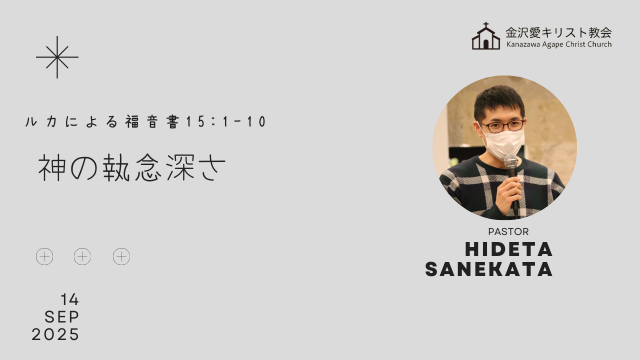牧師ブログ 「神の執念深さ」 2025年9月15日 kanazawa-agapechurch https://kanazawa-agapechurch.com/wp-content/uploads/2018/12/text.png 金沢愛キリスト教会 主人のもと離れてしまった存在 皆さんは何か大切なものを失くした経験はあるでしょうか? 私は結構置き忘れしてしまう方で、これまで財布を3回無くしたことがあったり、ついこの間も …